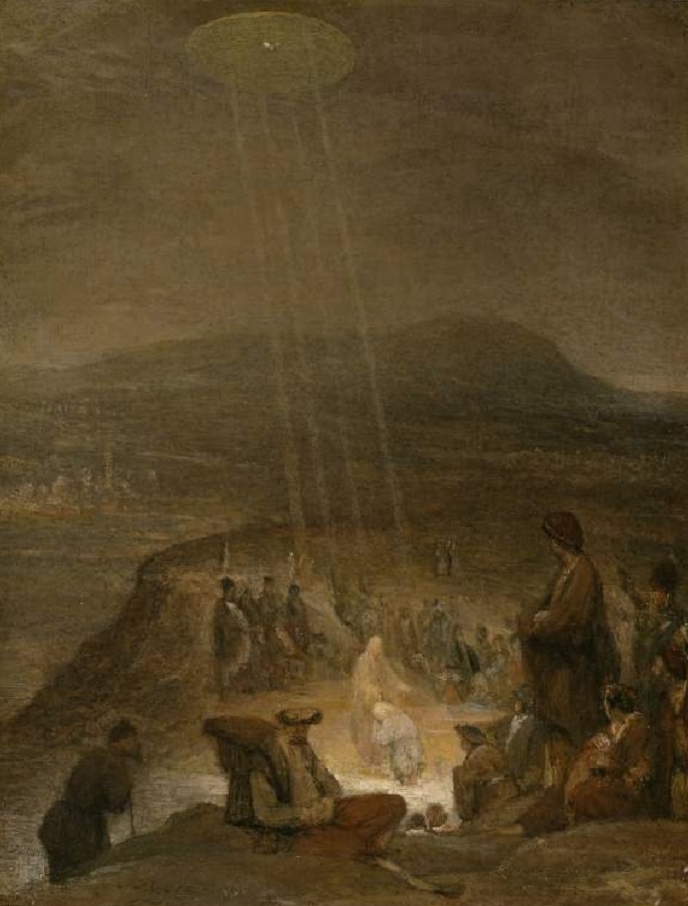 Estos se pueden ver en los cientos de miles de obras de arte que existen y estamos aquí para discernir cuál fue el significado detrás de todo esto. En el Bautismo de Cristo de Aert De Gelder, por ejemplo, hay una interpretación típica de un platillo volante que se ilumina por encima del bautismo.