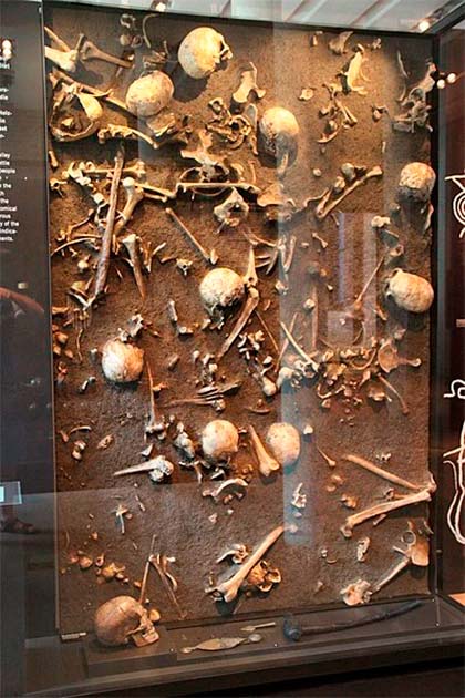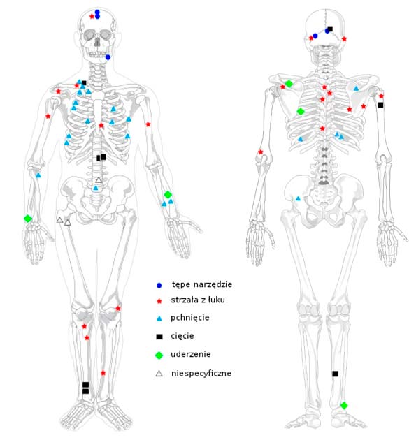 Uno de los esqueletos excavados era el de un hombre, estimado entre 25 y 35 años en el momento de su muerte, que aparentemente fue víctima de violencia poco antes de exhalar su último aliento.