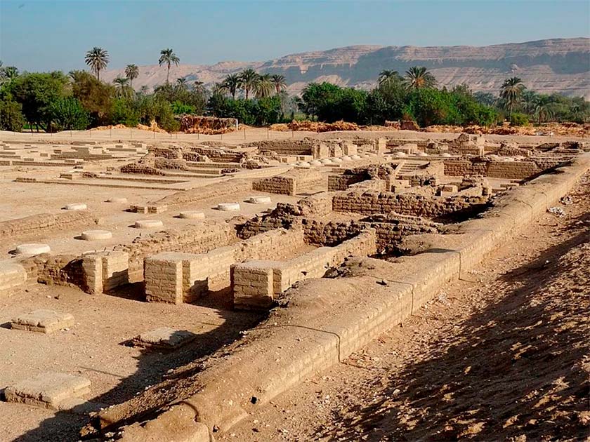 La ciudad fue construida en el siglo XIV a.C. y tuvo importancia solo durante 15 años, como parte de la nueva religión de Akenatón que fue rápidamente sofocada después de su muerte. En 2009, un proyecto liderado por la Universidad de Cambridge con fondos de la National Geographic Society encontró restos de los conos en la cabeza del antiguo Egipto.